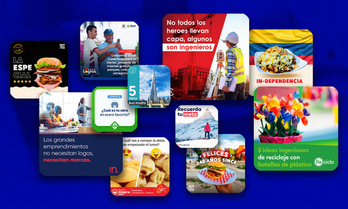 Haremos 7, 15, 20 o 30 publicaciones en redes sociales, diseños de anuncios, diseño de publicaciones en Instagram, Facebook, diseño de anuncios en Twitter.